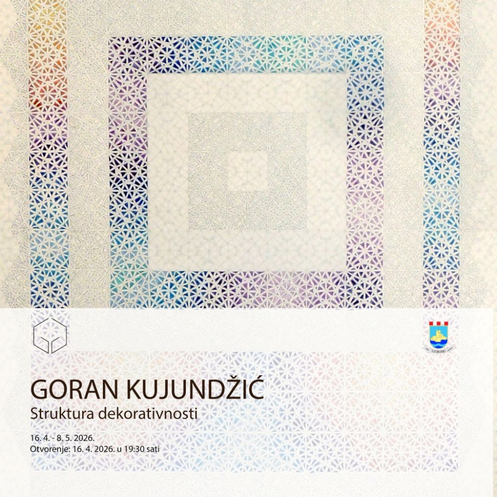 Gradska galerija Ljubuški - JU „Kulturno-športski centar“ Ljubuški organizira izložbu naziva Struktura dekorativnosti vizualnog umjetnika s osječkom adresom Gorana Kujundžića. Otvorenje izložbe će se održati u četvrtak 16. travnja s početkom u 19:30 sati.