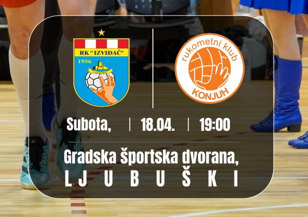 U Gradskoj športskoj dvorani u Ljubuškom, s početkom u 19:00 sati, RK Izviđač Agram igra utakmicu 23. kola Premijer lige protiv RK Konjuh iz Živinica.